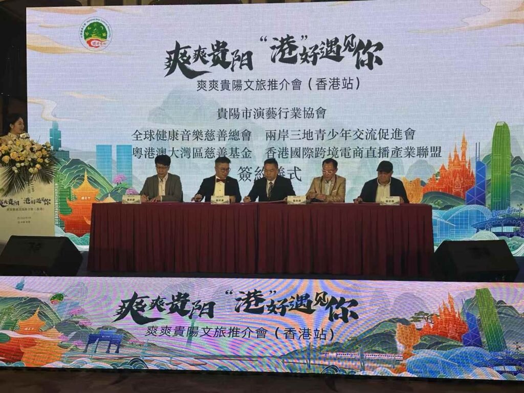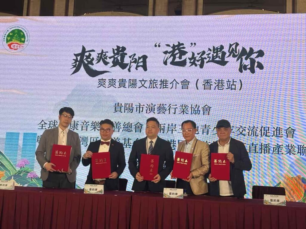 粵港澳大灣區慈善基金與貴陽演藝行業協會、全球健康音樂慈善總會、兩岸三地青少年交流促進會、香港國際跨境電商直播產業聯盟等單位在現場共同簽署合作協議,攜手推動文化、公益、青年交流與跨境電商等多領域發展。