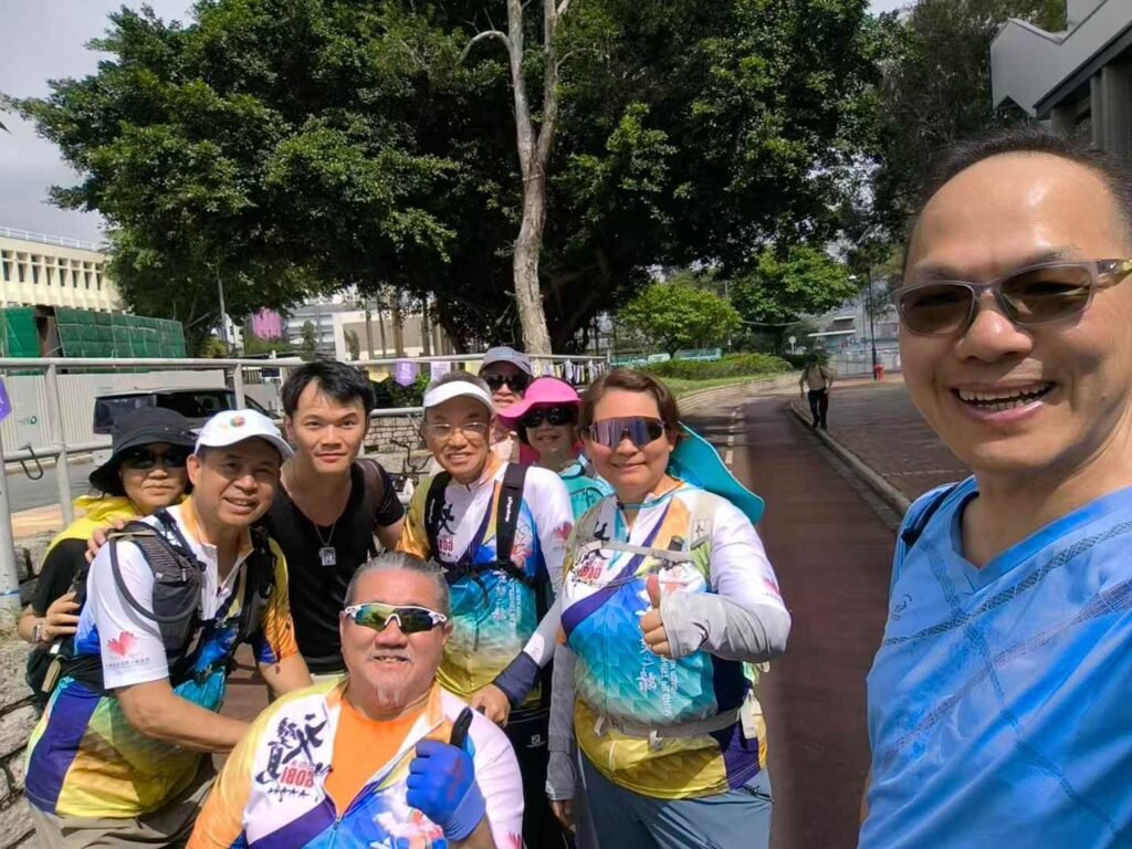 是次訓練由多位義工協助照顧,包括佳哥、唐醫生、Elvin及Rockson,沿途細心支援參加者,確保每位行者都能安全順利完成預備路段。同時,韓明老師伉儷亦一同參與訓練,展現堅定公益信念。