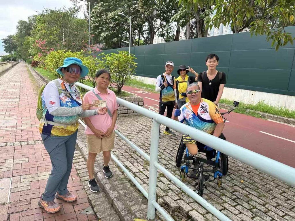 值得一提的是,當步行隊伍經過大圍站時,一位素未謀面的熱心市民芳姐即席加入同行,更慷慨捐出港幣$500以支持史泰龍先生參與的慈善挑戰,場面令人動容。