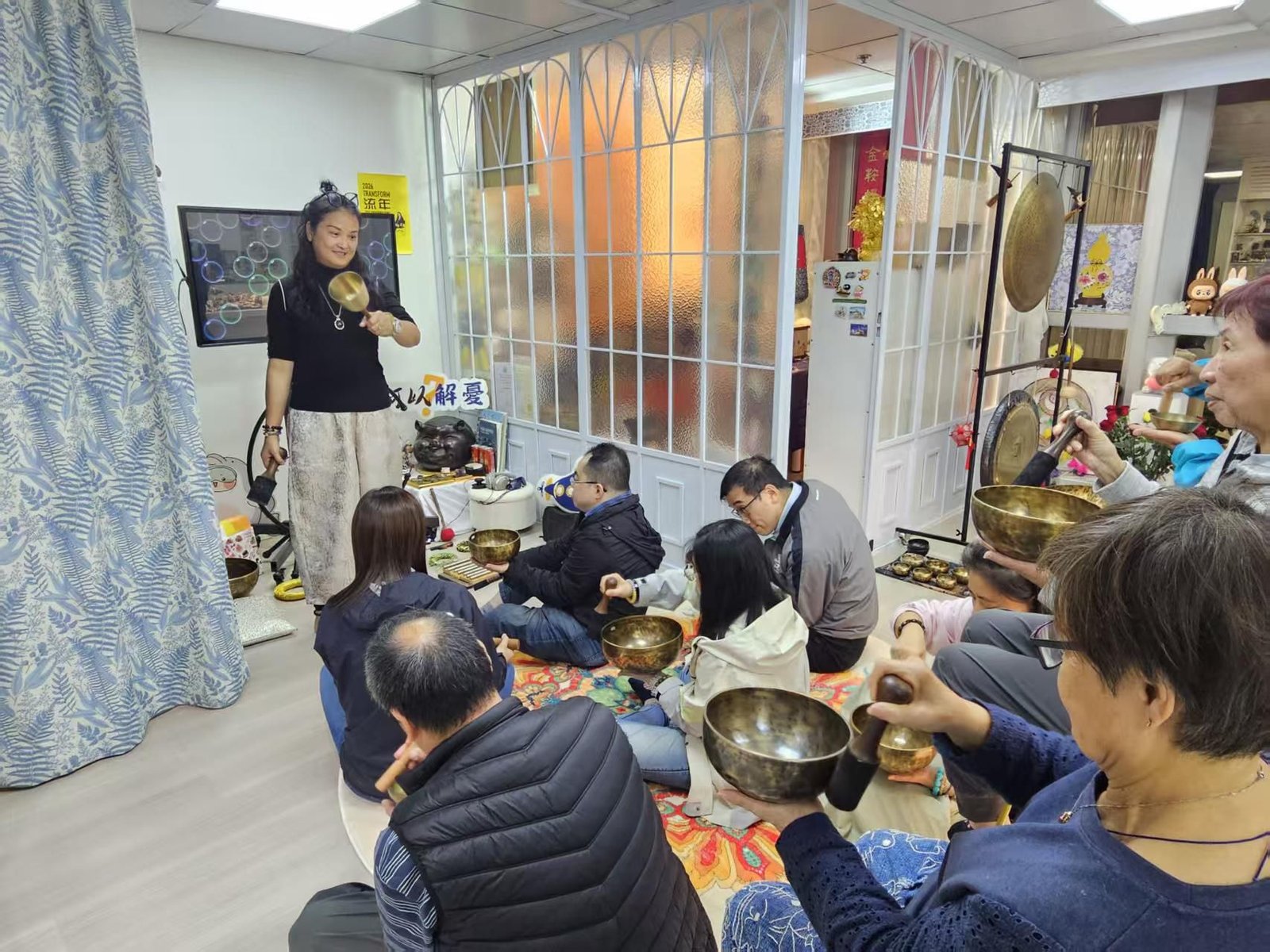 3月3日元宵節的晚上,頌缽頻率與人聲吟唱交織,現場出現「同步」——呼吸趨於一致,多位長期失眠的社工進入深度放鬆,將無形的頻率體驗轉化為可帶走的具體承諾:療癒不是終點,是續航力的起點。