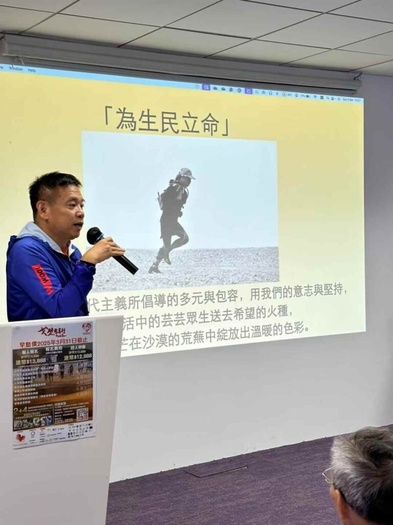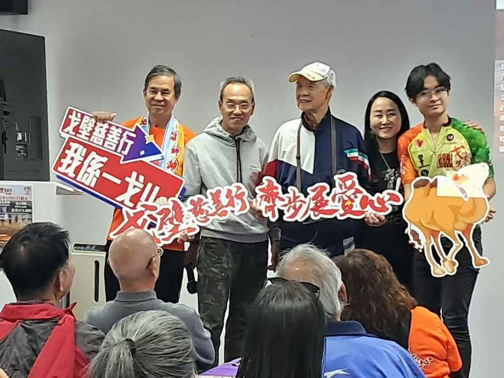 是次分享會邀得 Benny、佳哥、史泰龍、Mani、Mick 仔、May 和 LJ 現身說法,細說他們在戈壁灘的感動時刻與蛻變故事,讓在場人士深受啟發。更感人的是,基金總幹事 Uncle Stanley 的昔日「苗圃行動」老戰友——92歲高齡的東叔,亦親臨現場支持,並坦言有意參與今屆戈壁慈善行,消息一出,全場報以熱烈掌聲。若成行,東叔將有望成為活動歷屆最年長的挑戰者,意義非凡。